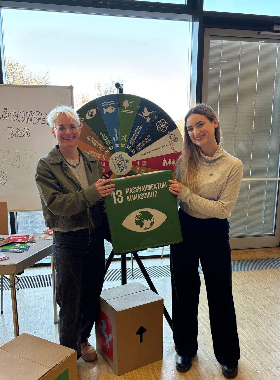 „Das Interesse am SDG-Glücksrad war enorm – zeitweise kamen so viele Jugendliche vorbei, dass ich aufgehört habe zu zählen. Die Schüler:innen waren sehr offen, neugierig und haben viele Fragen gestellt. Besonders positiv überrascht hat mich, dass einige Jugendliche die SDGs bereits aus dem Schulunterricht kannten und ihnen das Thema sofort etwas sagte. Viele wollten tiefer einsteigen und haben sich intensiv mit einzelnen Nachhaltigkeitsfragen auseinandergesetzt. Manche wären am liebsten den ganzen Tag beim Stand mit dem Glücksrad geblieben."